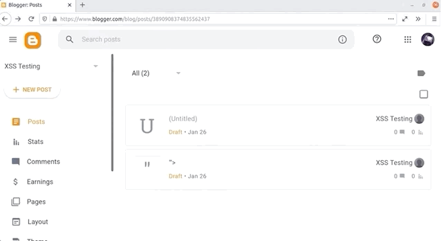 Even though it seems on the surface like a great injection metric, since it shows you if your XSS injection is critically exploitable, this is not the case. Having a window pop up is not necessarily the proof that there is a security vulnerability, in fact. Let's have a look at why this is the case using Google's own Blogger service.
