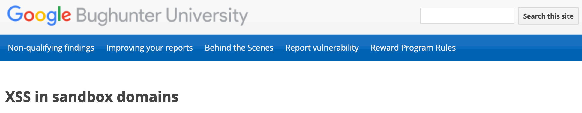 In summary, Google allows XSS by design in sandboxed subdomains, and a simple alert is not enough to prove that you have uncovered a serious XSS issue. You should always check what domain the XSS is executed on by using the alert(document.domain) or alert(window.origin) payloads. Hopefully you can appreciate the value of sandboxing domains and iframe environments, at least from a defense standpoint. Don't be discouraged though! Having an alert(1) execute could be the start of uncovering something bigger, so keep at it and take notes! We just want you to understand the broader context so that you can better investigate and see if you can find a bug that can get you a bounty. Good luck hunting!