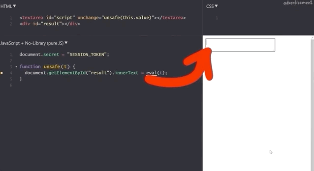 iframe sandbox.We implemented a simple tool that allows us to execute JavaScript expressions via eval.