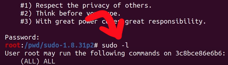 We therefore decided to take a step back, and assess the big picture to try and identify what we should do. We checked whether the argument parsing still worked, by running sudo -l :