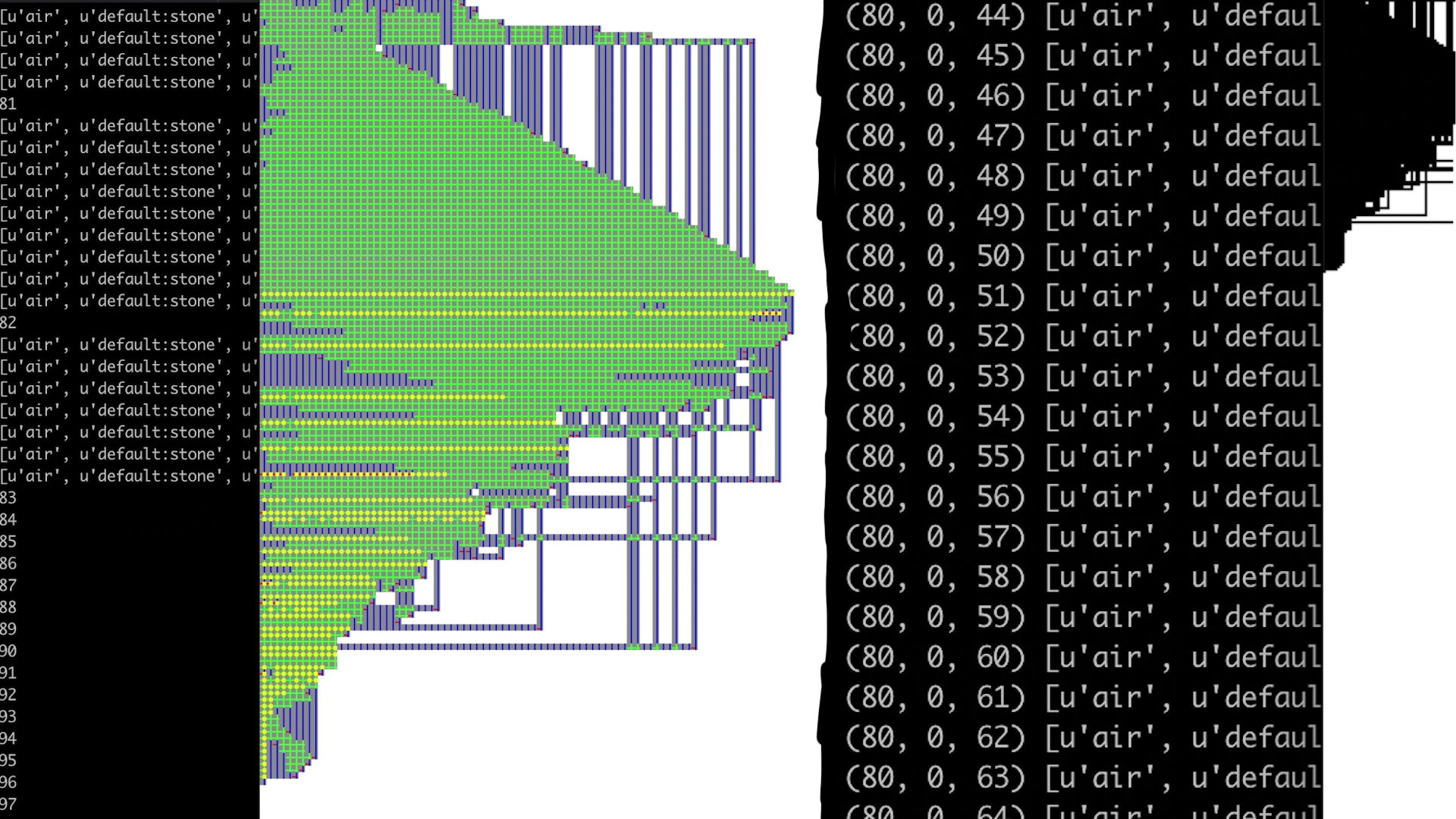I thought it would be a good idea to visualize the map parsing, in order to verify that it works. So I used Pillow, the python image library, to draw pixels for the blocks I’m parsing. Here it is: