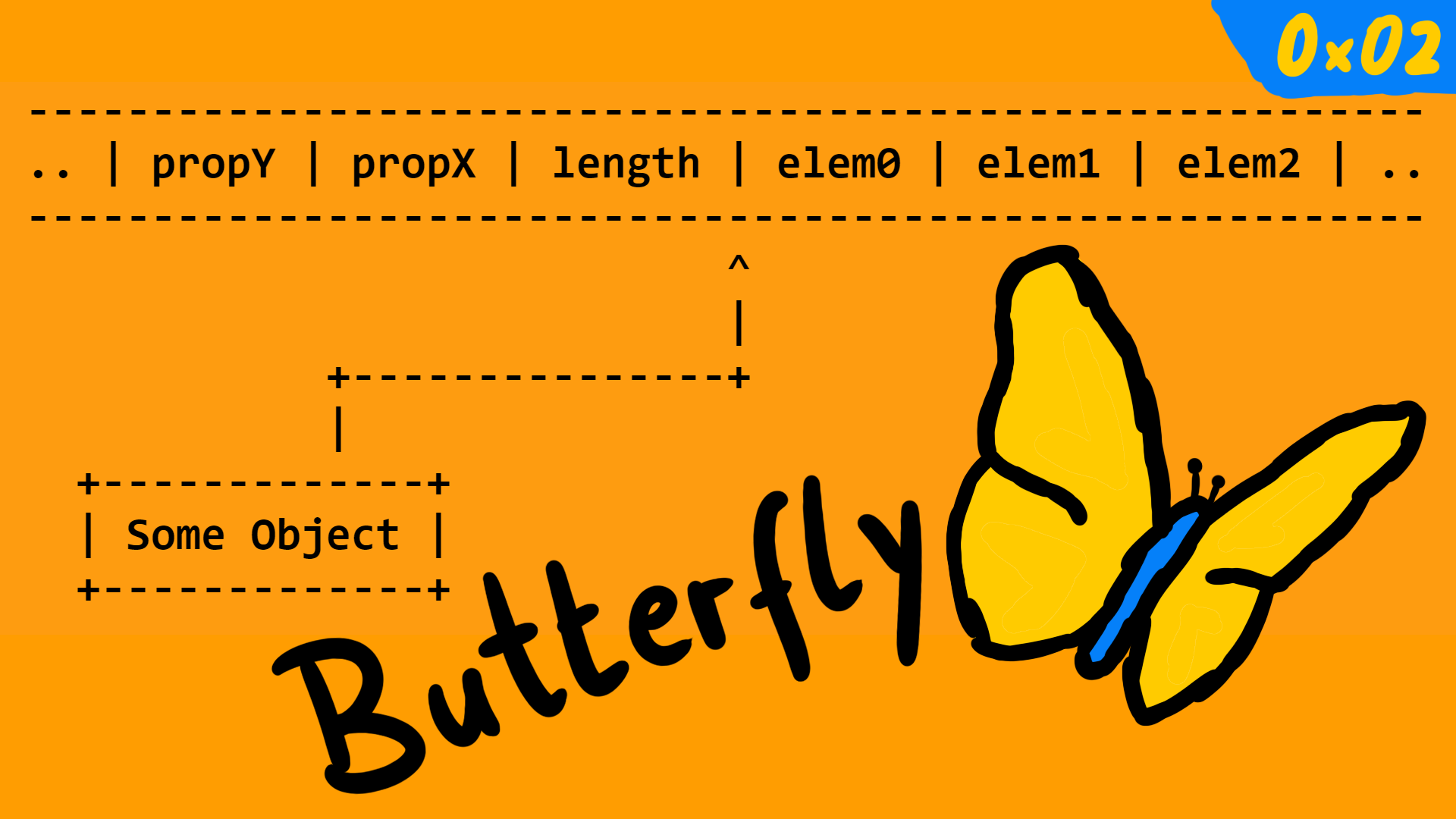 When looking at the output of the describe() function, we also see a so called butterfly address. From playing around with the memory, we already know that it contained the elements of an array. But why is it called butterfly?
