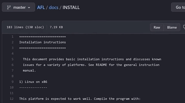 makeWith this step completed, let's have a quick look at the quickstart.txt file available on the AFL's GitHub to find out about the various ways that we can instrument a target. For the record, we're using the original AFL in this part of the series, though we'll switch to AFL++ later (you'll see why soon).