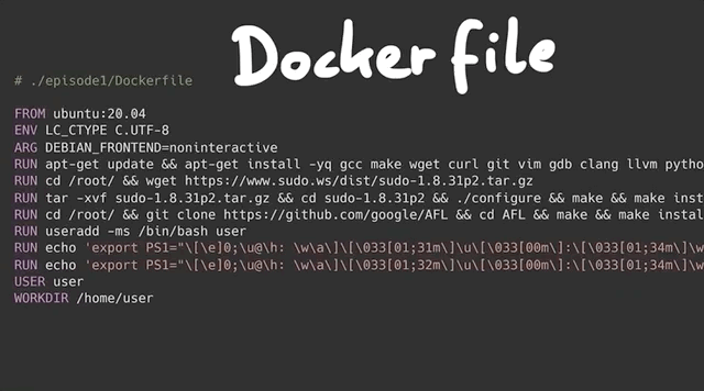 afl for fuzzing. Their documentation is available on GitHub. We've included the afl build in the Docker makefile, so you don't have to do anything if you decide to use our makefile.The official documentation for AFL is actually quite good, and you can find the GitHub page here. The installation just involves cloning the repository, building with make and installing the right binaries with make install. If you've looked at the Docker file, you might've noticed that we already put this in there, so that when you build the first episode container, afl will get installed automatically.