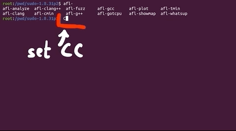 CC environment variable to use the afl-gcc compiler.Why this specific compiler? That's because it will modify sudo so that it can get fuzzed with afl. We suggest you also run make clean in your terminal to clean up object files and executables. Then, we can trigger a new build with make. Here's a hint: if you see a lot of afl in the compile log as it quickly scrolls before your eyes, then you know it's working.