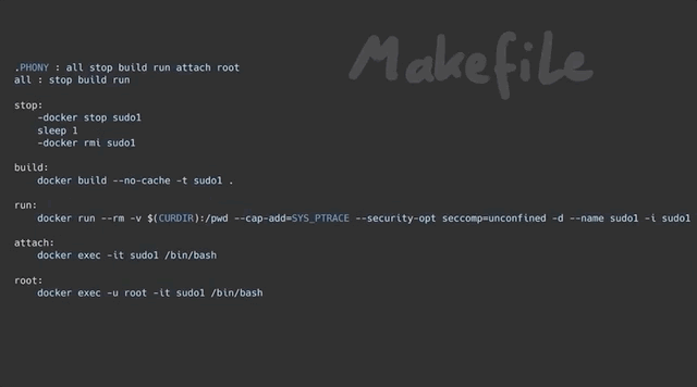 We also set up a makefile to build the Docker container with the vulnerable sudo version so that we can carry out our study of the bug.